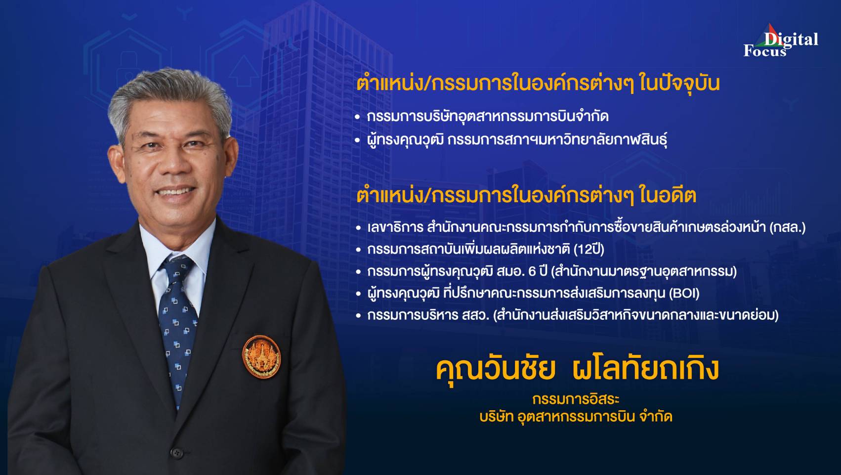 2547-ปัจจุบัน กรรมการ บริษัท อุดสาหกรรมการบิน จำกัด